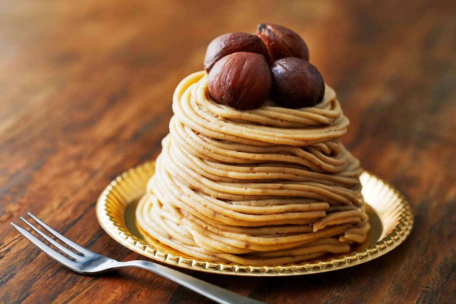 しっとりふわふわなチョコレート味のスポンジ生地に、半分にカットした栗を挟み、創業当初から変わらないAtelier Anniversary特製マロンクリームをふんだんに絞り上げ、最後に栗を丸ごと贅沢に飾り付けて完成です。コクがありながら、なめらかな口当たりのマロンクリームとゴロっと丸ごと使った栗の渋皮煮が絶妙に調和し、秋の味覚を感じさせる逸品です。