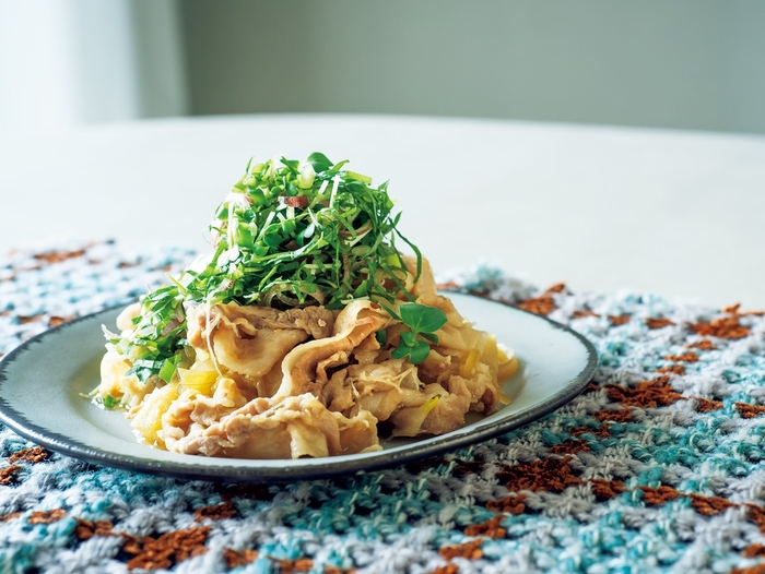 たっぷりの玉ねぎとしょうが、豚肉を重ねて調味料をふり、蒸すだけの焼かない「豚のしょうが焼き」