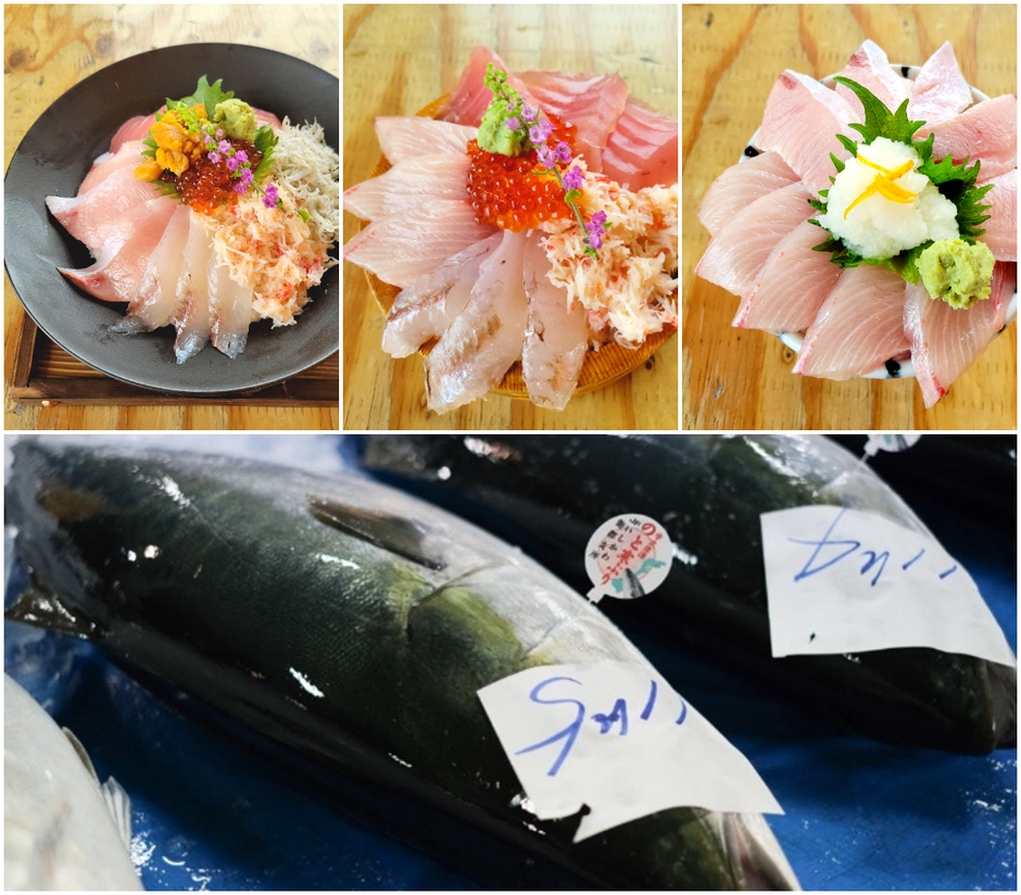 ■能登半島の美味しい寒ぶりをはじめ、いくら、うに、地魚、ズワイガニ、釜揚げしらす、まぐろなど海の幸を7種ものせた贅沢な一品です。