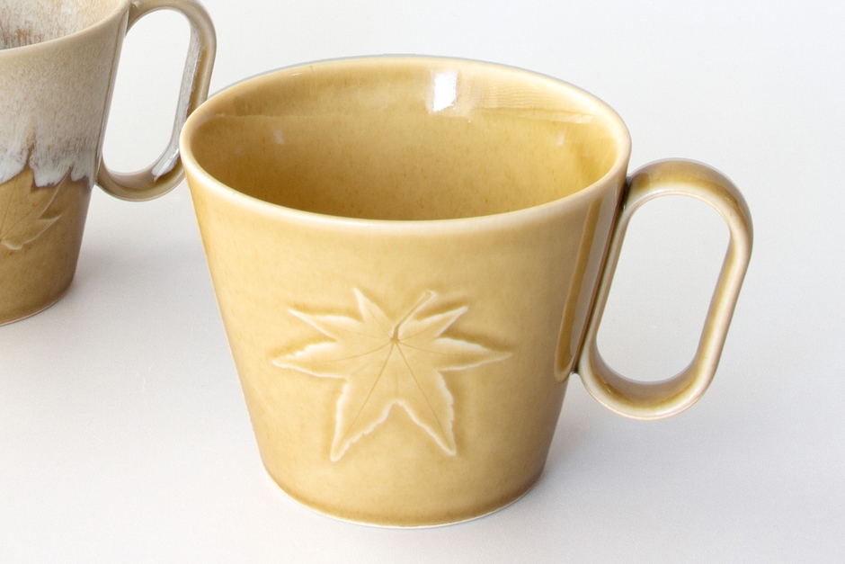 生涯を添い遂げるマグ 宮島御砂焼 対厳堂 もみじ紋 浮葉