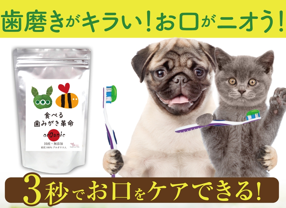 オリジナルの犬、猫の健康食品、フードの販売を行うドッグダイナー株式会社(所在地:東京都港区、代表取締役:石田 真彩子、法人番号:2010401078178)は、犬・猫の口臭を3秒でケア出来る無添加サプリ「食べる歯磨き革命」のお試しモニターの募集を2022年9月8日から開始します。