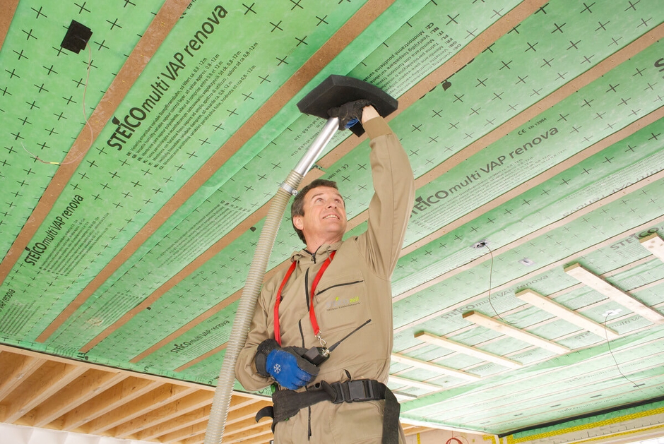 STEICO(シュタイコ)社の木質繊維断熱材では吹込み用の製品の取り扱いは日本で初めてとなり、有限会社もるくす建築社(本社:秋田県、代表取締役:佐藤 欣裕)をはじめに、国内の各地域で試験的に施工が行われ、施工した工務店やビルダーからは性能の評価が高く、販売要望の声に応え、3月に販売を決定しました。