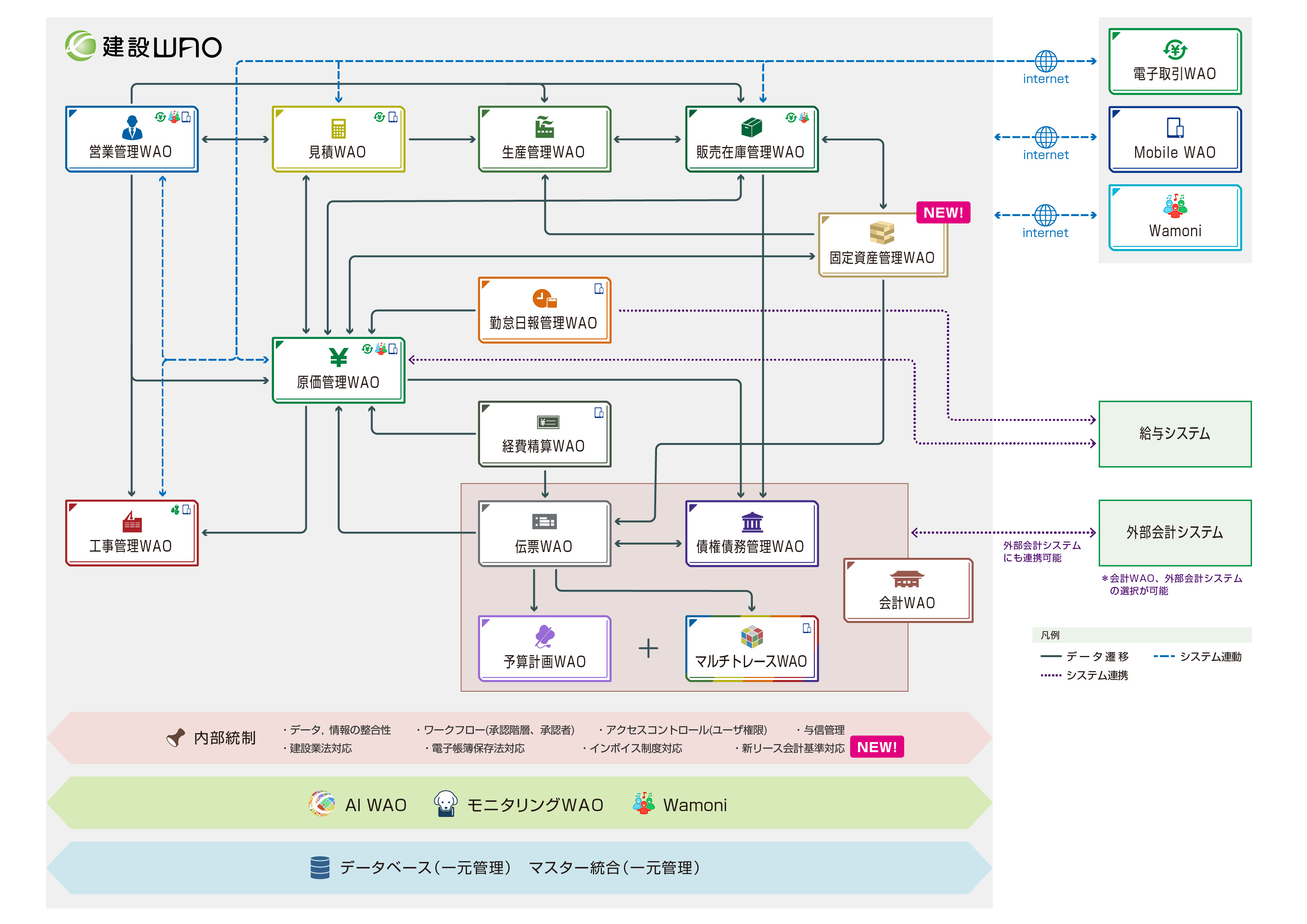 1 統合型ERP「建設WAO」の各システムと連動し、情報の一元管理が可能。