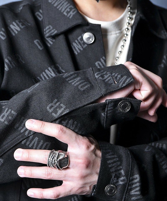 DIVINERらしいブラックを基調としたデニムジャケットに、ブランドロゴを全体に散りばめたひと品は、何度も自分自身と向き合い、その末に誕生した自分だけの信念を表現しました。