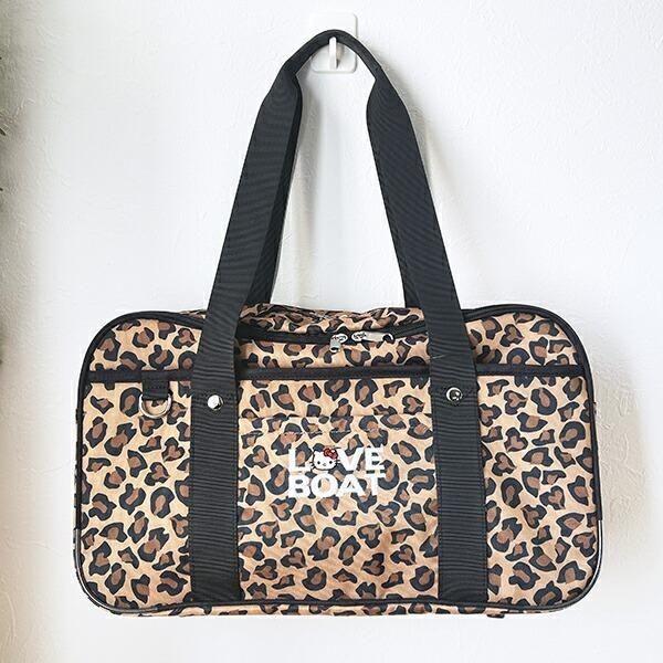 続いては、ギャルといえばもう王道中の王道”レオパード柄”バージョンの、 ハローキティ ×LOVEBOAT(ラブボート) スクールバッグ レオパード。こちらもロゴデザインの中に、さりげなくキティちゃんの姿が隠れています。ブラウンのヒョウ柄の中で、キティちゃんの赤いリボンがアクセントになっていて、ギャル感たっぷりの仕上がりです。
