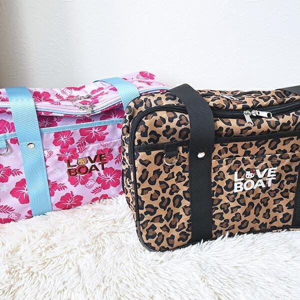 こちらもLOVEBOATのみのデザイン。同じピンクベースでも、キティちゃんコラボとはまた違い、ヒョウ柄×ハイビスカスというアツすぎる組み合わせが魅力です。よりギャル感が強く、持っているだけでテンションが上がりそうなデザインですね。