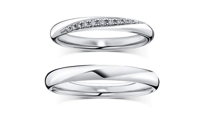 シンプルなリングには、ふたりでともに刻んでいく軌跡を2本のラインで表現しています。内側にも丸みを付けたアームが叶えるなめらかな着け心地と、ミュージカル「喝采」の名を戴く華やかな輝きが魅力です。