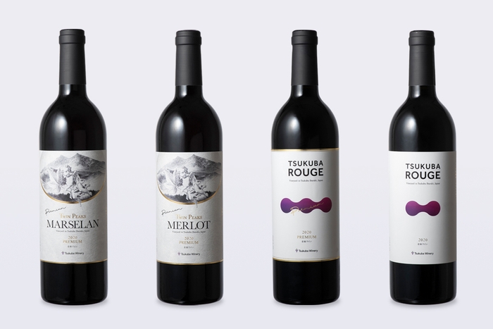 今回リリースするのは「ツインピークス マルスラン、ツインピークス メルロー、つくばルージュ プレミアム、つくばルージュ」の4品種。特にカベルネ・ソーヴィニヨンとグルナッシュの交配種である「マルスラン」は、日本でもまだ栽培例がほとんどない希少な品種です。プレミアム・ラインは、厳選した果実を使い樽熟成を行うなど、手間を惜しまず造られた点が特徴。
