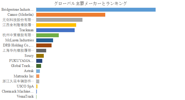 LP Informationのトップ企業研究センターによると、ラバートラックの世界的な主要製造業者には、Bridgestone Industrial Ltd.、Camso (Michelin)、元创科技股份有限公司、江西金利隆橡胶履带股份有限公司、Trackman、杭州中策橡胶有限公司、McLaren Industries、DRB Holding Co., Ltd.、上海华向橡胶履带有限公司、Soucyなどが含まれている。2024年、世界のトップ5企業は売上の観点から約54.0%の市場シェアを持っていた。