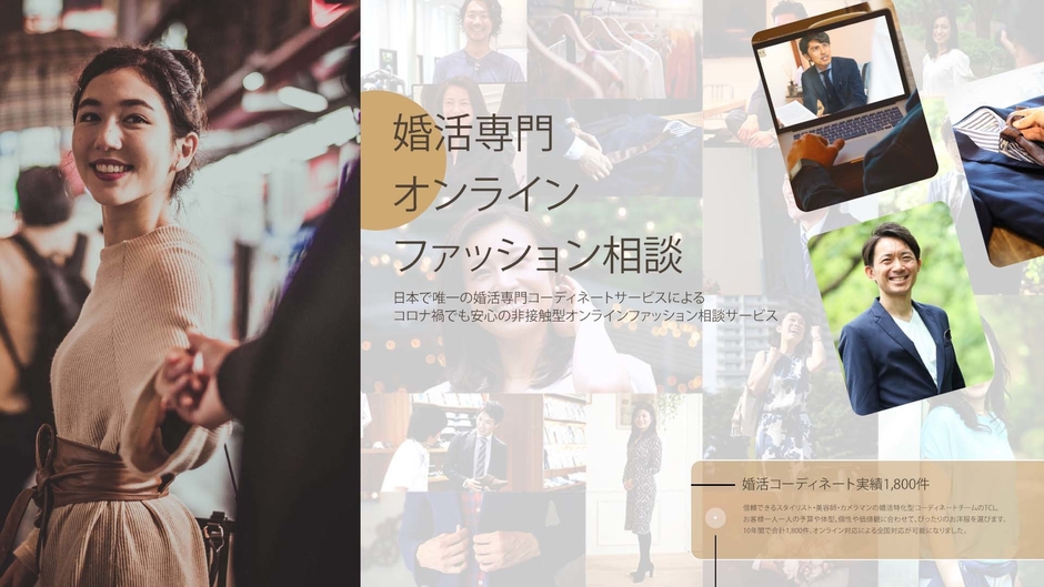 1対1のパーソナルスタイリングという特性上、どうしても場所の制約があり、これまでは、関東圏内というエリア限定で提供してきたサービスでした。しかし、オンラインデートやオンラインミーティングを始めとしたオンラインサービスのインフラが整った現在、これまで培ってきた婚活ファッションの知見を全国の方に届けたいと思い、婚活専門オンラインファッション相談「TCLオンライン」をスタートすることとしました。