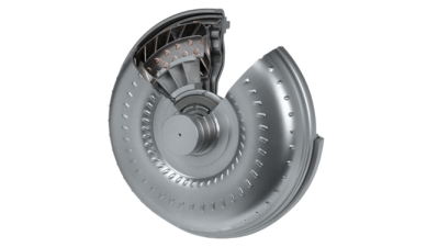 オートマチックトランスミッショントルクコンバーターとは、自動車のオートマチックトランスミッション(AT)において、エンジンの回転力(トルク)を効率的に伝達・変換する流体動力装置である。トルクコンバーターは、インペラー、タービン、ステーターの三つの主要部品で構成され、液体の流れを利用して回転力を増幅させ、滑らかで連続的な動力伝達を実現する。これにより、エンジンと駆動輪の回転差を吸収し、発進時や低速走行時でも振動やショックを軽減する役割を果たす。また、回生トルクや油圧制御により燃費性能や加速性能を向上させることが可能であり、自動車の走行安定性や乗り心地の向上にも寄与する。近年では、高効率化や小型軽量化が進められ、ハイブリッド車や高性能車など幅広い車種に採用されている、重要な駆動系部品である。