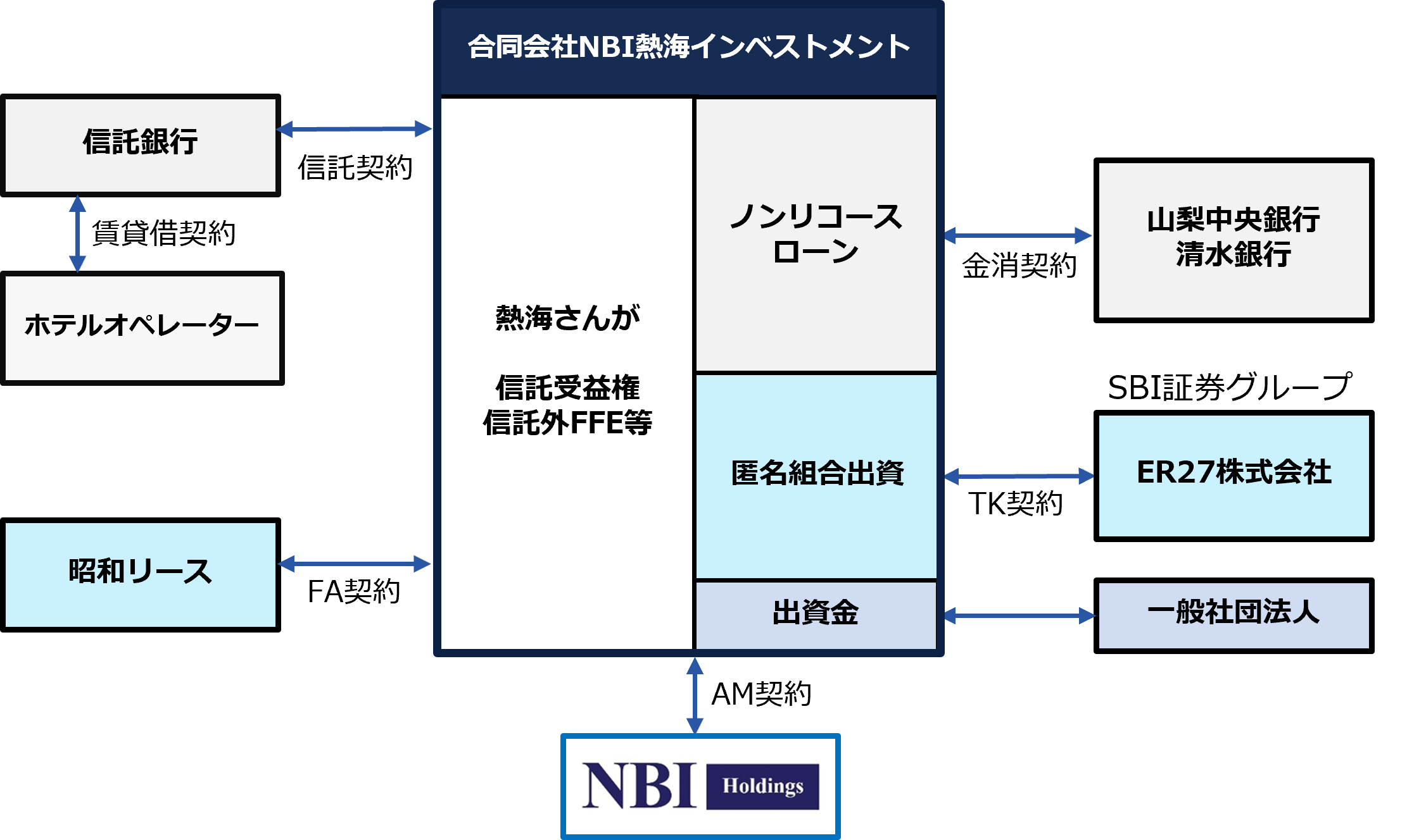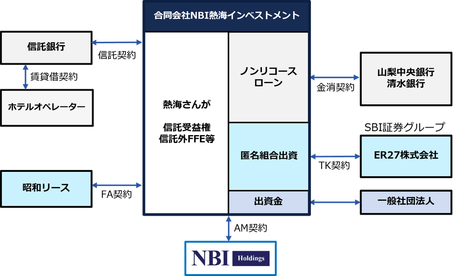 株式会社NBIホールディングス(本社:東京都港区、代表取締役:金谷 隆行、以下「NBIホールディングス」という。)は、静岡県熱海温泉の高級温泉旅館「熱海さんが」(以下「本物件」という。)において、旅館のバリューアップと運用を目的としたファンド「合同会社NBI熱海インベストメント」(以下「本件ファンド」という。)を組成しましたのでお知らせいたします。本件ファンドは、株式会社SBI証券(本社:東京都港区、代表取締役社長:高村 正人、以下「SBI証券」という。)のグループ会社から匿名組合出資を受け、NBIホールディングスがアセットマネージャーとして運用を行い、高級温泉旅館としての更なる価値向上を推進してまいります。