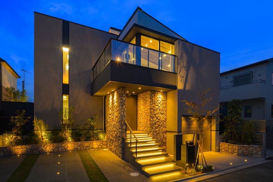 グレーを基調とした外観に、天然石のアクセントにあしらうことで、柔らかな曲線と陰影が織りなす、繊細で端正なファサードを構成。湘南の自然と街並みに静かに調和する、品格ある佇まいを実現しました。