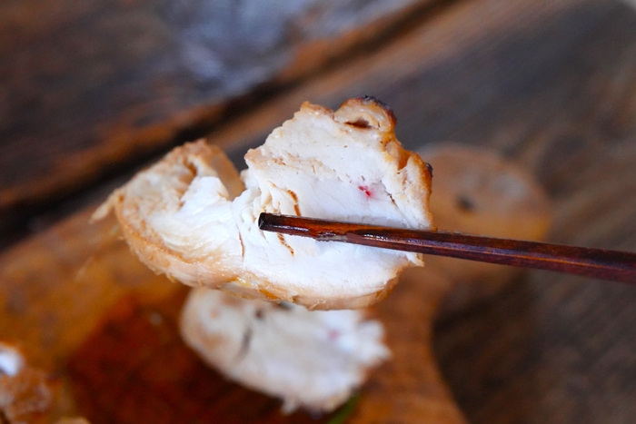 「鶏チャーシュー」は国産鶏を使用し、低温でじっくりと加熱しており、みずみずしさも感じられます。ヤマト醤油味噌のしょうゆだれを奥までしみ込ませているので、ごはんがすすむ逸品です!