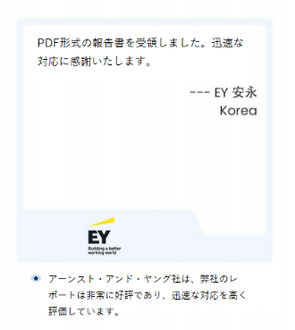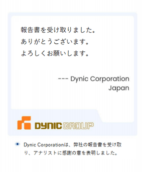 「PDF形式の報告書を受領しました。迅速な対応に感謝いたします。」