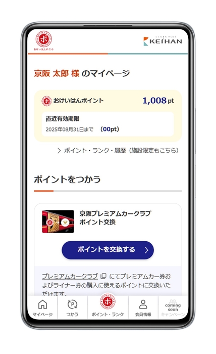 10月1日(水)以降、京阪グループ公式HP(https://www.keihan.co.jp/)の「おけいはんポイント」ページに本サイトが公開され、会員登録が可能となります。なお、利用規約については本サイトでご確認ください。