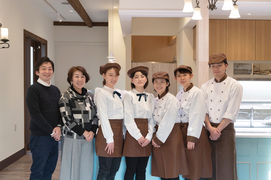 長く愛されてきた企業だからこそ、地元に貢献したい想いも強くあります。商品には石岡のいちごや笠間の栗、小美玉の卵など、近隣地域の新鮮な食材を積極的に使用。ディスプレイの器にも笠間焼を多く揃えました。地元のためにと、オープン前からクリスマスにこども食堂で子供たちにケーキをプレゼントしたり、新成人のお客さまをお菓子でお祝いしてきました。