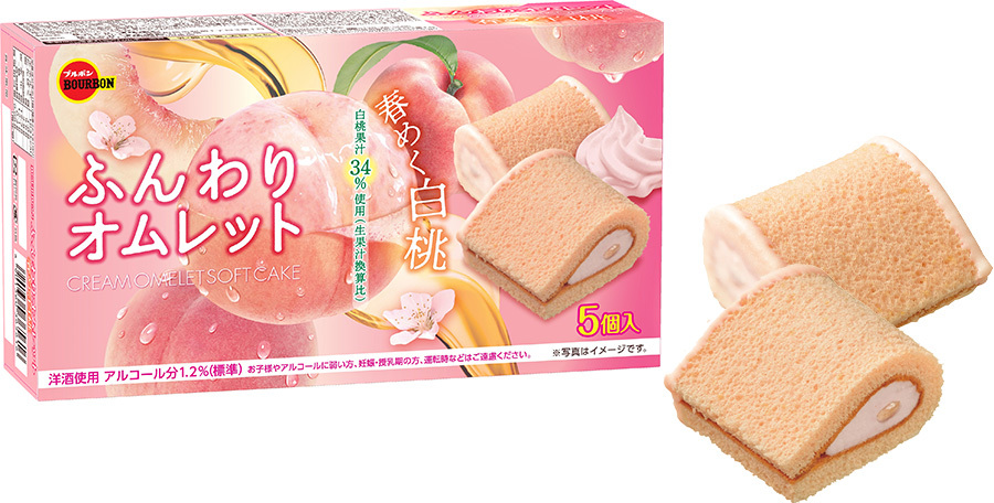 桃色でやさしい甘さの春らしいふんわりケーキ ブルボン、「ふんわりオムレット春めく白桃」を 期間限定で2月3日(火)に新発売!