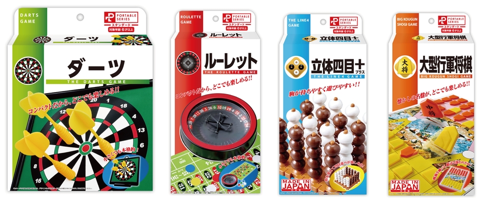 株式会社ハナヤマ(本社:東京都千代田区/代表取締役:小林 邦広)は、携帯型の室内ゲーム玩具「ポータブルダーツ」、「ポータブルルーレット」、「ポータブル立体四目プラス」、「ポータブル大型行軍将棋」を2020年8月29日に発売します。