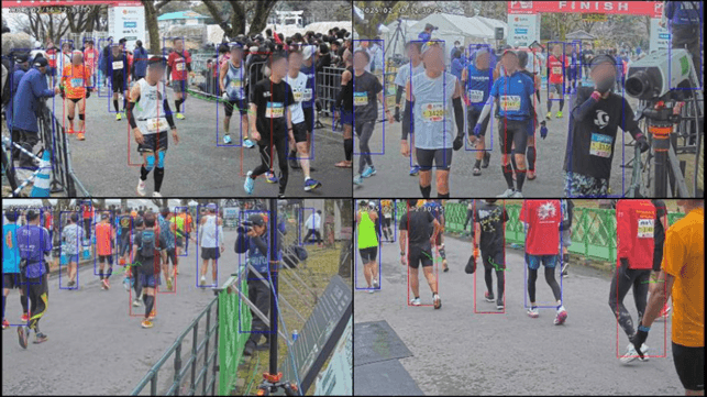 マラソンの会場において、カメラの前を通過する複数のランナーのゼッケンを「瞬時に」「正確に」読み取り、記録を残す実証実験を実施。ロココが自社開発した顔認証システムAUTH thru(オースルー)の画像認証技術と、i-PROのAIカメラ(AIネットワークカメラ、AIモジュールカメラ)が機能連携することで実現しました。