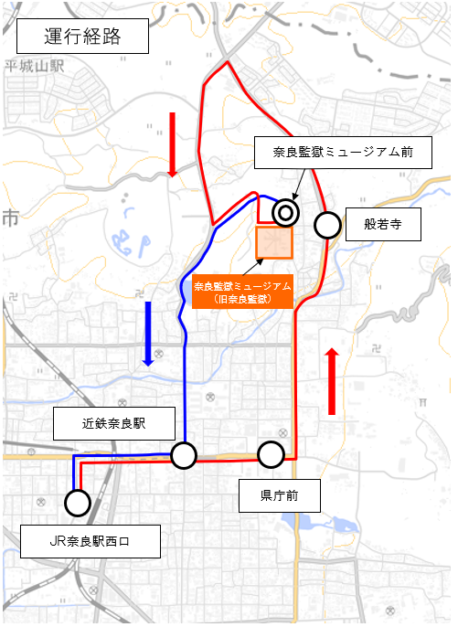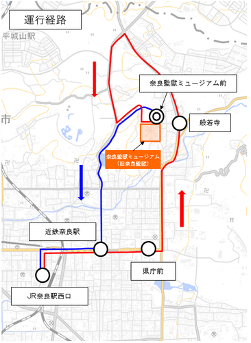 〔往路〕JR奈良駅西口→近鉄奈良駅→県庁前→般若寺→奈良監獄ミュージアム前
