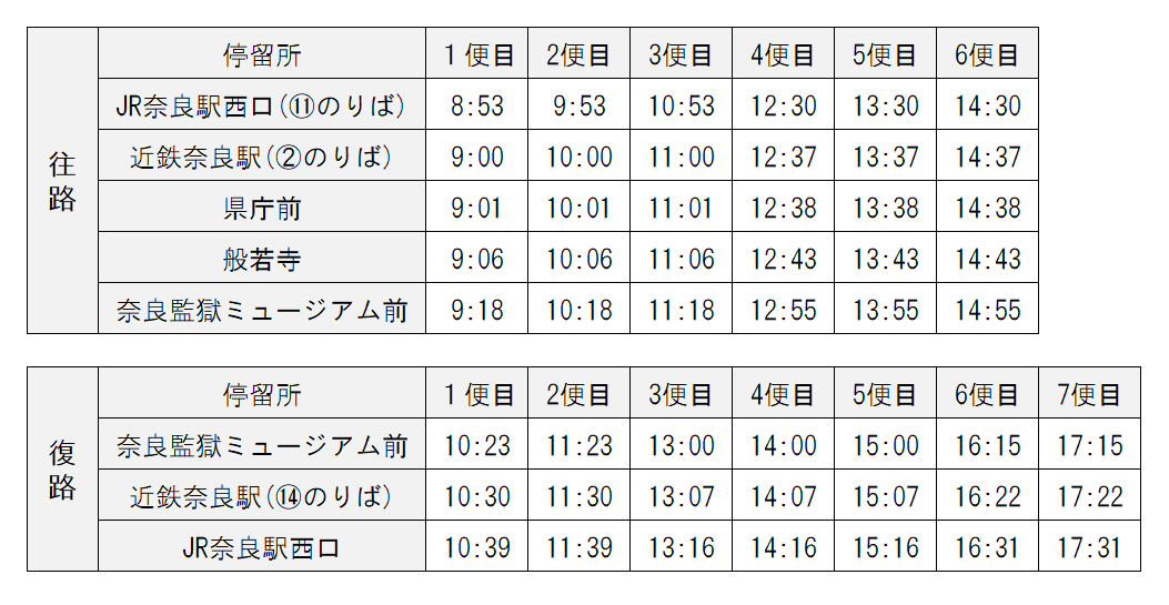 〔復路〕奈良監獄ミュージアム前→近鉄奈良駅→JR奈良駅西口