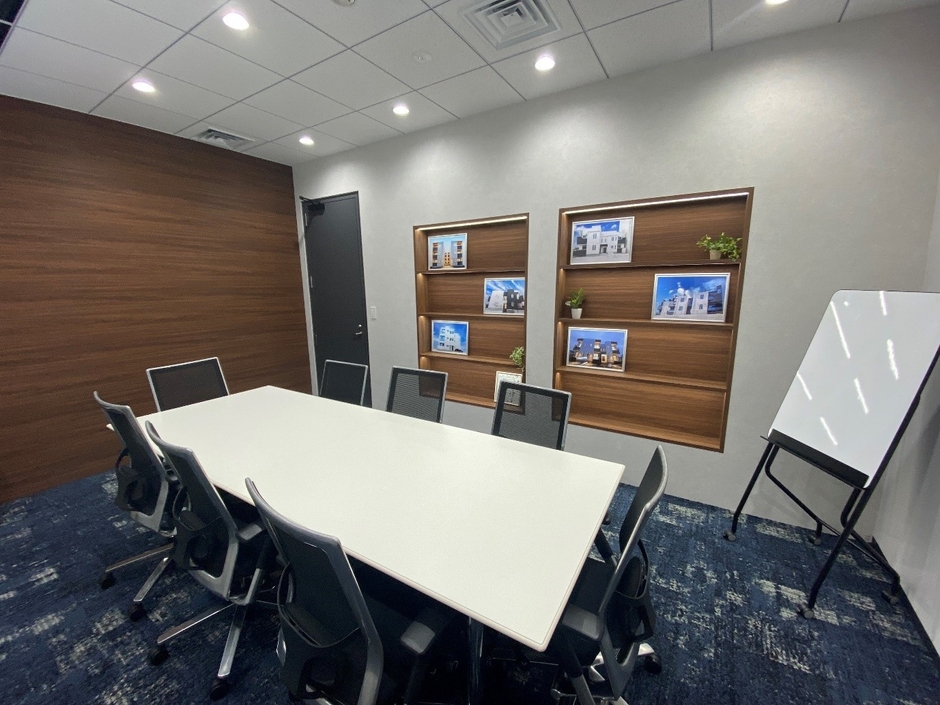 新オフィスは、黒色や茶色を基調としたエントランスや商談室で、ご来社いただく方を落ち着いた雰囲気でお迎えします。