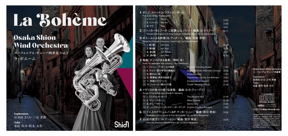 日本で最も長い歴史と伝統を誇る交響吹奏楽団、Osaka Shion Wind Orchestraを有する公益社団法人 大阪市音楽団(本社:大阪市住之江区/理事長:石井徹哉)は、ユーフォニアム・チューバ四重奏の第2弾CD『ラ・ボエーム』のリリースを決定いたしました。