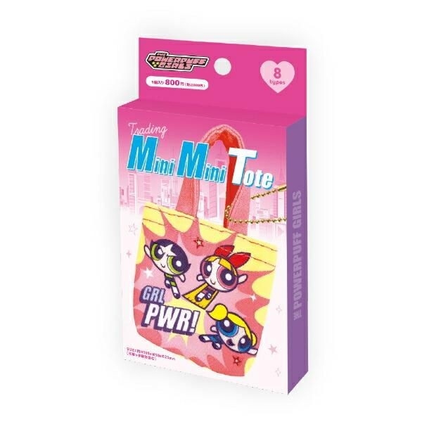 こちらは、パワーパフガールズのトレーディングミニミニトートバッグコンプリートBOXです。全部で8種のミニミニトートが入っています!箱のデザインからパワパフらしさが溢れていて、ファンにとっては嬉しい!