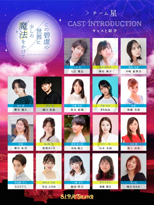 また、S.I.P.Hらしい華やかなダンスシーン、新たに作曲された音楽、ファンタジー要素も絶妙に作品に散りばめられているので、ファンの方も必見です。また、豪華キャストが集結した、ダブルキャスト、チーム空、チーム星、2チームに分かれて上演します。