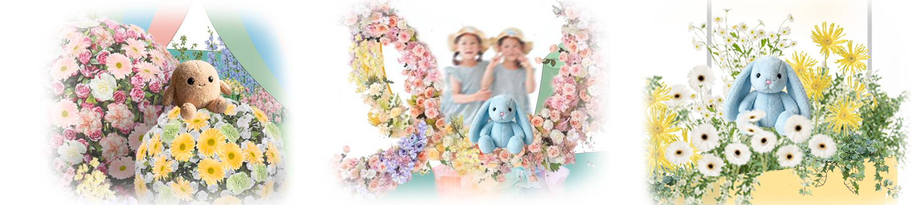 玉乗りや火の輪くぐり、空中ブランコなどのサーカスの演目をお花で表現。華やかなサーカスの世界観をそのままに、色とりどりの花々が楽しいパフォーマンスを繰り広げます。写真映えするスポットがたくさんあるので、お気に入りのぬいぐるみと一緒に撮影する「ぬい撮り」もおすすめです。