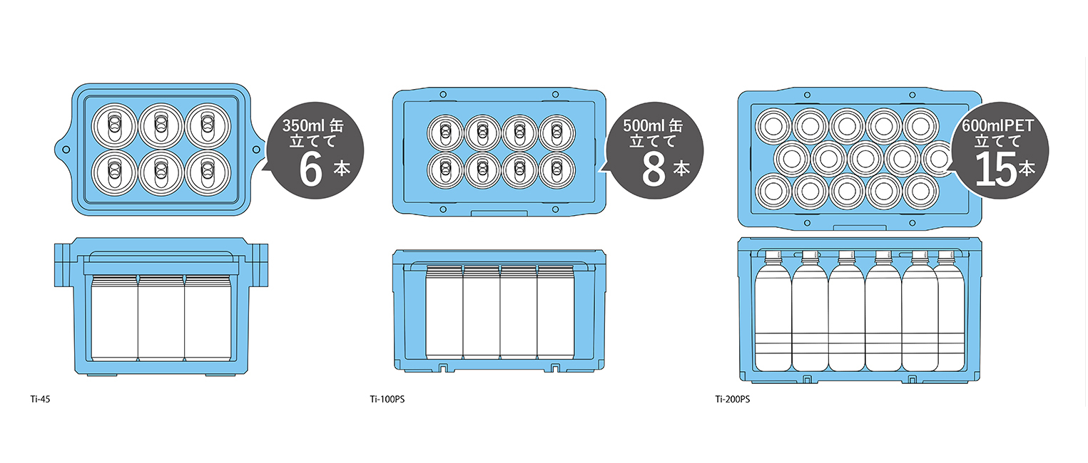 飲料が立てて入る内寸設計でペットボトルや缶飲料を効率的に収納することができ、取り出しも容易です。それぞれ500ml缶、600mlペットボトルを想定し近年の多様化する様々な飲料規格にも対応できる収納力です。
