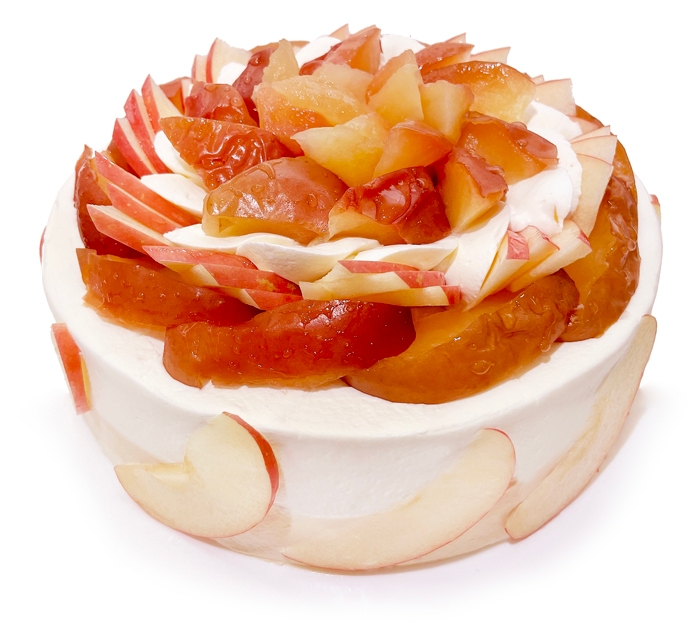 群馬県産のりんご「あかぎ」を、パティシエが丁寧に焼き上げ、レモンを加えたクリームとキャラメルクリームをあわせて飾り付けました。食感の違うフレッシュと焼きりんごを一度にお楽しみいただけるショートケーキです。