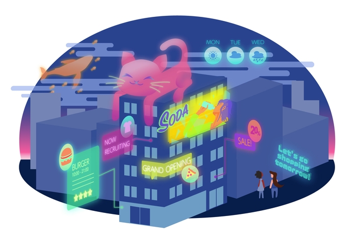 MUGHEの世界では、AIによってローカル化・パーソナライズ化された情報が出現。同じ場所・空間であっても、見る人・場所・時刻によって個々に最適化された情報が出現することで、1つのヒト・モノ・コトがもたらす価値を無限に広げます。