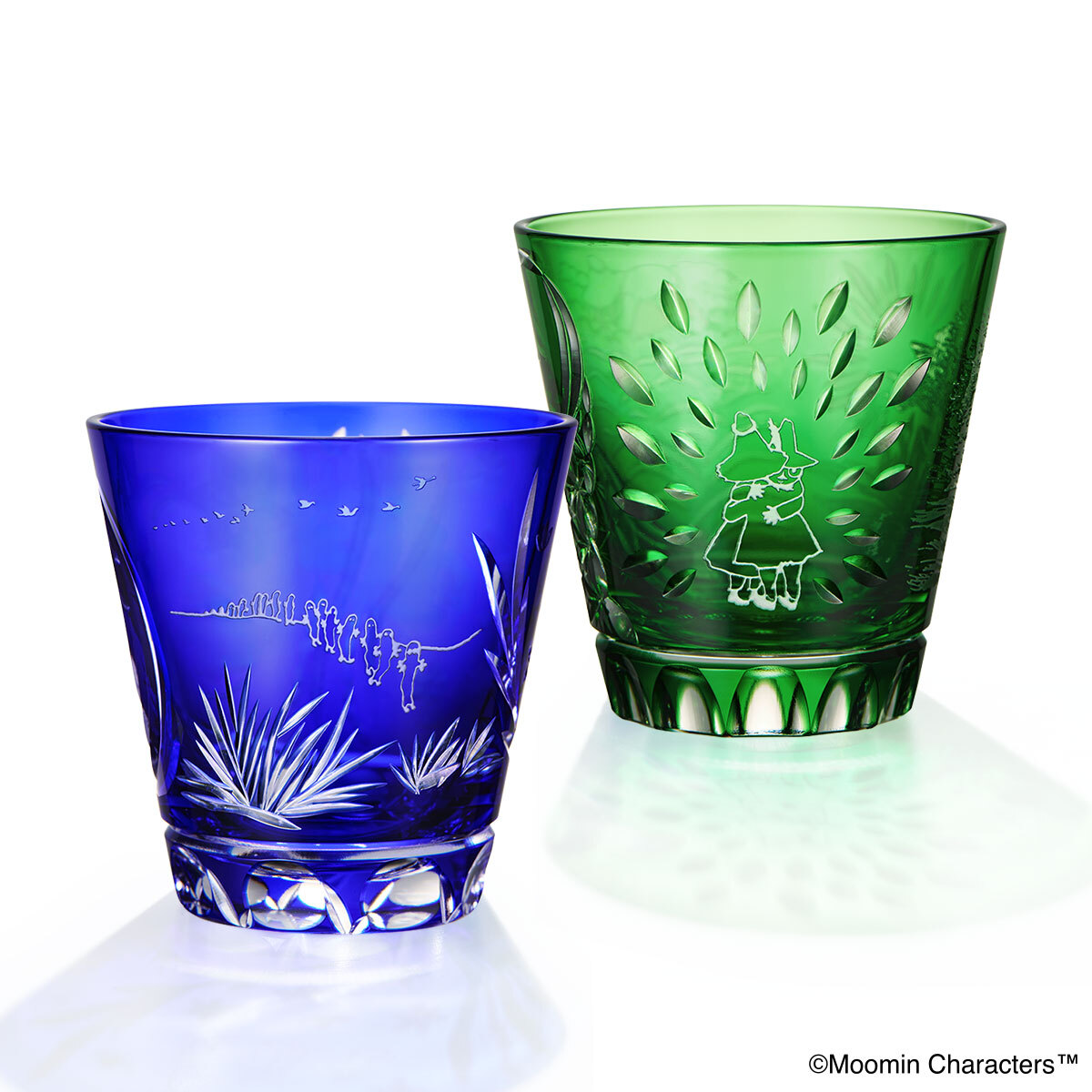 ムーミン小説の世界が、日本の伝統的工芸品「江戸切子グラス」に! ムーミンとニョロニョロ・スナフキンとヨクサルの2種類