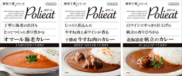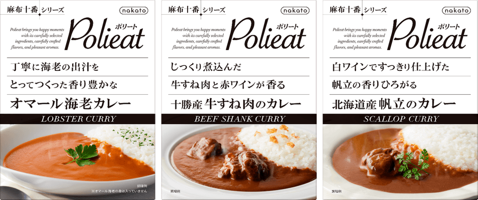nakatoブランドで展開する「麻布十番シリーズ」から 『贅沢な気分になれるメニューで気分がととのう』を コンセプトとした「Polieat」を立ち上げ、カレー全3品を新発売!