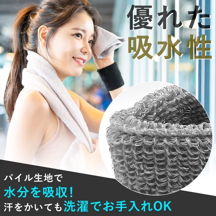 高密度で編まれた柔らかな生地を使用しており、通気性が非常に高いのが特徴です。また、使用後は洗濯しても型崩れしにくく、耐久性に優れています。伸縮性に富んだ素材を使用しているため、様々な腕のサイズにフィットし、締め付けが少ないため運動の動きを妨げにくいのもポイントです。