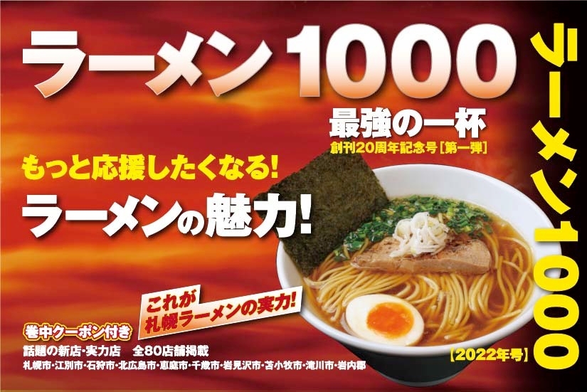 ラーメン1000プロジェクト(所在地:北海道札幌市、代表:中松 圭一)は、札幌の人気ラーメン店を紹介する「ラーメン1000最強の一杯【創刊20周年記念号 第一弾】」を、6月1日に発売します。