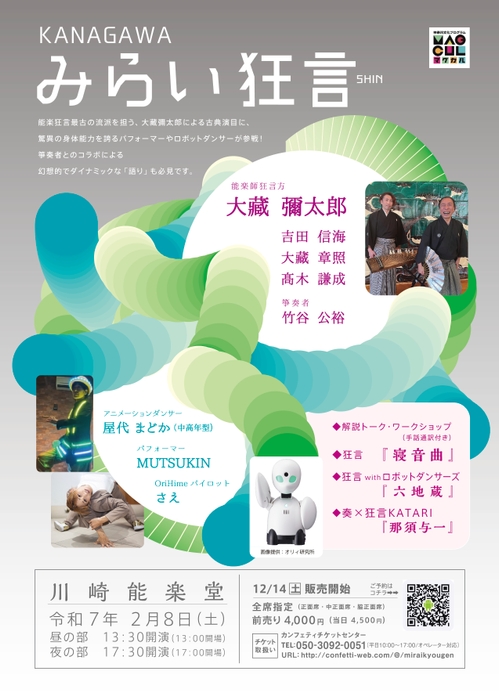 『KANAGAWAみらい狂言』川崎能楽堂にて開催決定 狂言最古の流派を担う大藏彌太郎が、分身ロボットOriHimeとともにナビゲート!