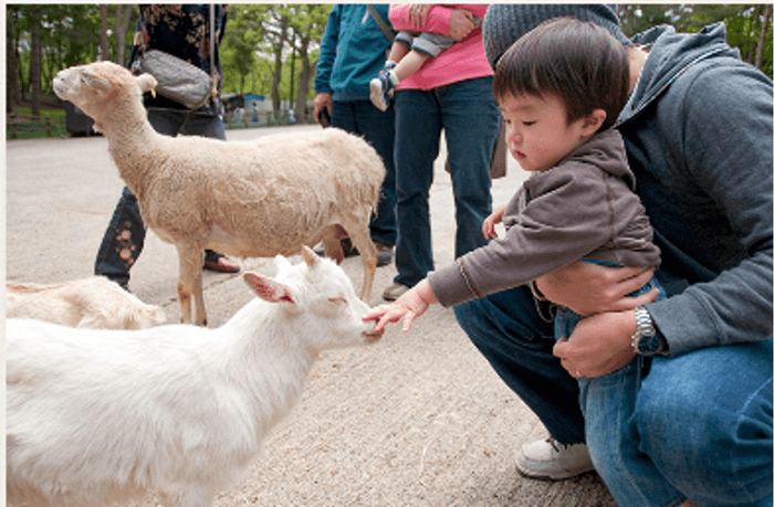 馬やロバに乗ったり、ヒツジやウサギなどの動物たちとふれあったりすることができ、アイスクリームづくりの体験もできます。(有料)
