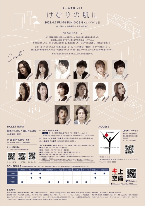 ◆キ上の空論#18『けむりの肌に』アフタートーク開催決定!◆ 上演期間:2023年4月7日(金)~16日(日) @CBGKシブゲキ!!
