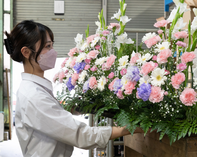 またSNSを活用し、花祭壇制作の工程や現場の仕事風景を発信することで、仕事の内容を可視化する取り組みも行っています。