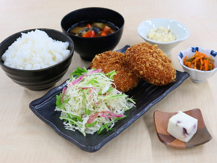 旨味あふれる米沢牛をポテトコロッケにしました。生姜を効かせた肉じゃが風の味付けで、ごはんによく合う仕上がりになっています。