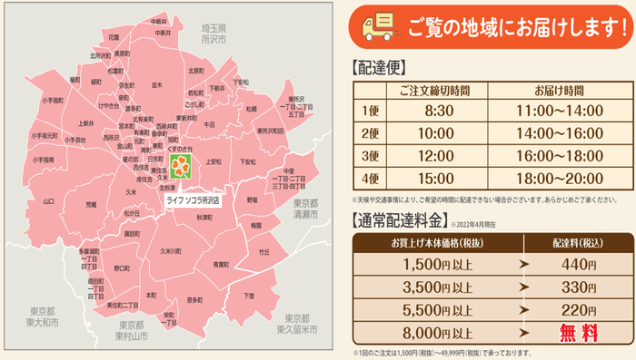 “おいしい” “ワクワク” “ハッピー” をお届けするライフコーポレーションは、5月8日(水)よりソコラ所沢店で「ライフネットスーパー」のサービスを開始しました。