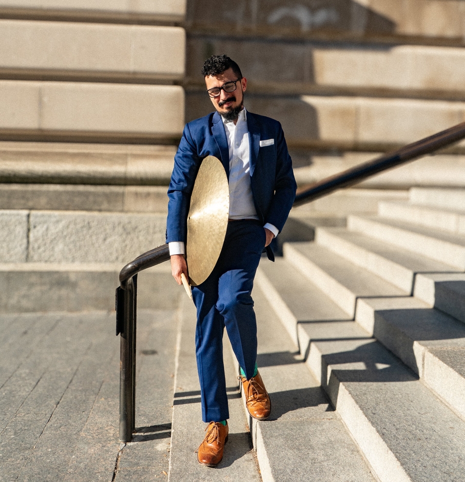 近年は新音楽の領域でも次々と話題作を発表しています。インド古典音楽を基盤とした微分音システムを確立し、2024年にはニューヨーク公共図書館舞台芸術部門から委嘱を受け、《Concerto for Bowed Cymbals》を発表しました。7枚の調律されたシンバル、ピアノ、ヴィブラフォン、サクソフォン2本、コントラバス、チェロによる編成で、リンカーン・センター内ブルーノ・ワルター・オーディトリアムにて初演されました。金属音響とスペクトル音響が交錯する本作は、現代音楽の新たな地平を切り拓く作品として高く評価されています。