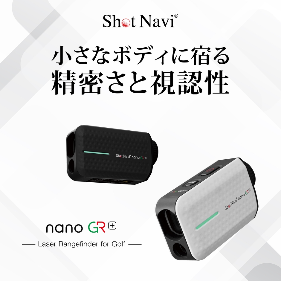 Shot Naviより、ゴルフ用レーザー距離計測器に新モデル登場! 超小型、超軽量の「nano GR+」を10月発売 超高速0.05秒計測、計測誤差±30cm、 3D計測モード(3点間距離計測)搭載