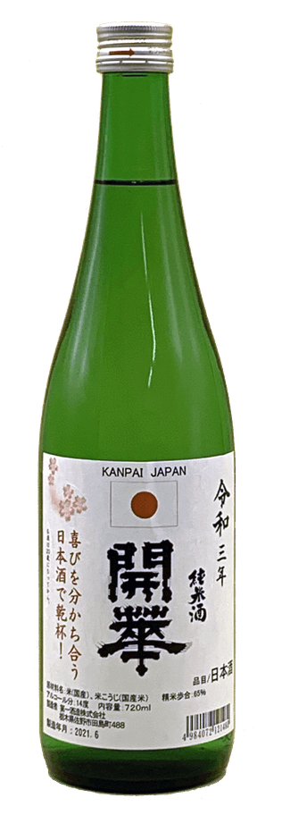 栃木県佐野市の酒蔵 第一酒造株式会社(代表取締役社長:島田 嘉紀)は、「開華 日本応援酒」を期間限定で発売いたします。このお酒は、今月から東京で開催される国際スポーツ大会を意識し、コロナ下で飲食店内や大勢が一堂に会しての観戦、応援、飲酒シーンが制限されるなか、自宅で家族とともに日本選手の応援をしながら飲んでいただくことを期待して発売するものです。