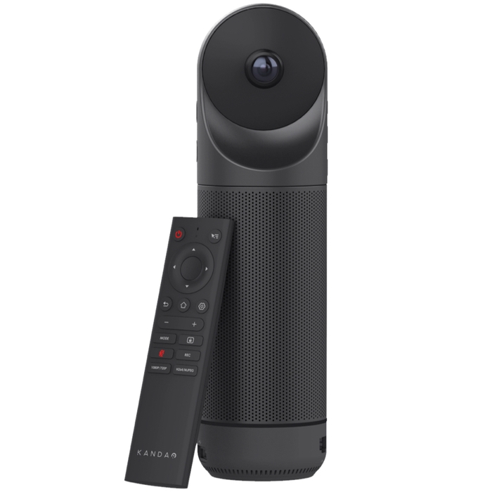 専用のBluetoothリモコンが付属されています。ユーザーは、Kandao Meeting Proの電源のオンオフ、会議ソフトウェアの切り替え、ビデオモードの切り替え、ミュート、音量の増減、会議中のビデオ録画の開始などの操作が可能です。