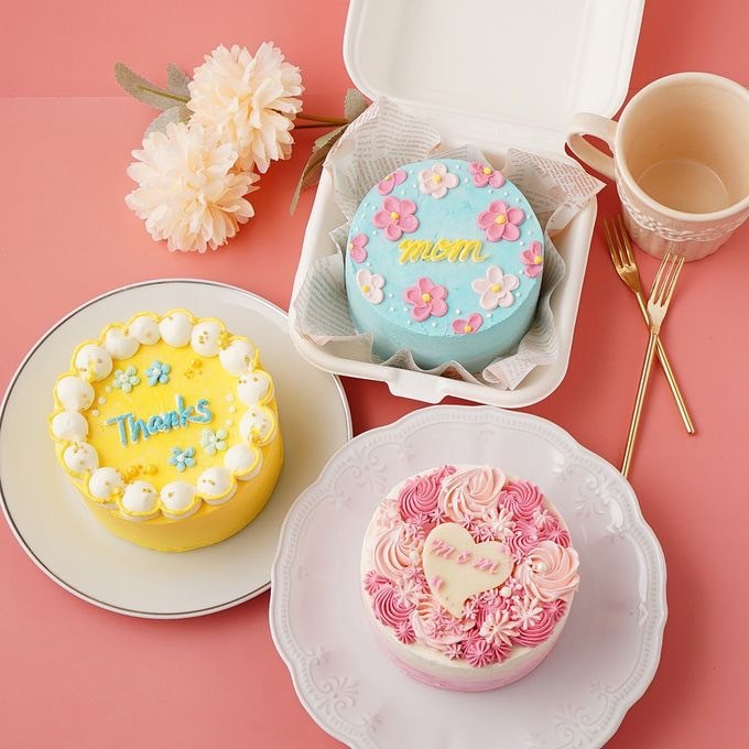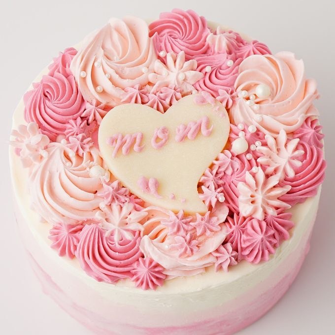 ハンバーガーケースに収まった直径10cmの可愛いホールケーキを3種類ご用意。食べきりサイズなのでお一人暮らしのお母様へのプレゼントにも最適です。メッセージは「Thanks」と「mom」の2種類。デザインは、ピンク、ブルー、イエローのお花をモチーフにした3種類。ふわふわのジェノワーズに、甘酸っぱいストロベリークリームと、フルーツをサンドしたショートケーキです。