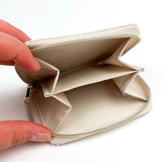 コンパクトなお財布もあります。ファスナーで開閉するタイプで、サイズは110×140×20mm。
